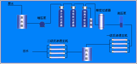 它是以壓力為推動力,利用反滲透膜只能透水而不能透過溶質的選擇性,從含有各種無機物、有機物、微生物的水體中,提取純水的物質分離過程。反滲透</strong></a>膜的孔徑小于10埃(1埃等于10-10米),具有極強的篩分作用,其脫鹽率高達99%,除菌率大于99.5%。可去除水中的無機鹽、糖類、氨基酸、細菌、病毒等雜質。如果以原水水質及產水水質為基準,經過適當設計后,RO是將自來水純化的最經濟的有效方法,同時也是超純水系統最好的前處理方法。